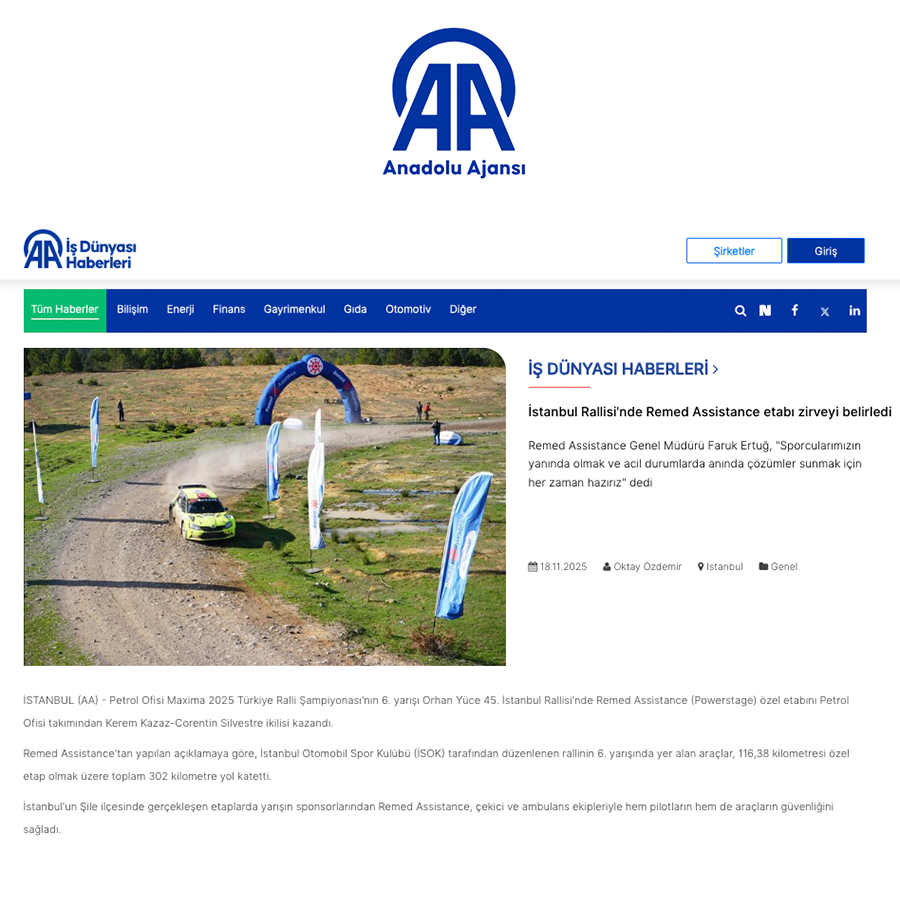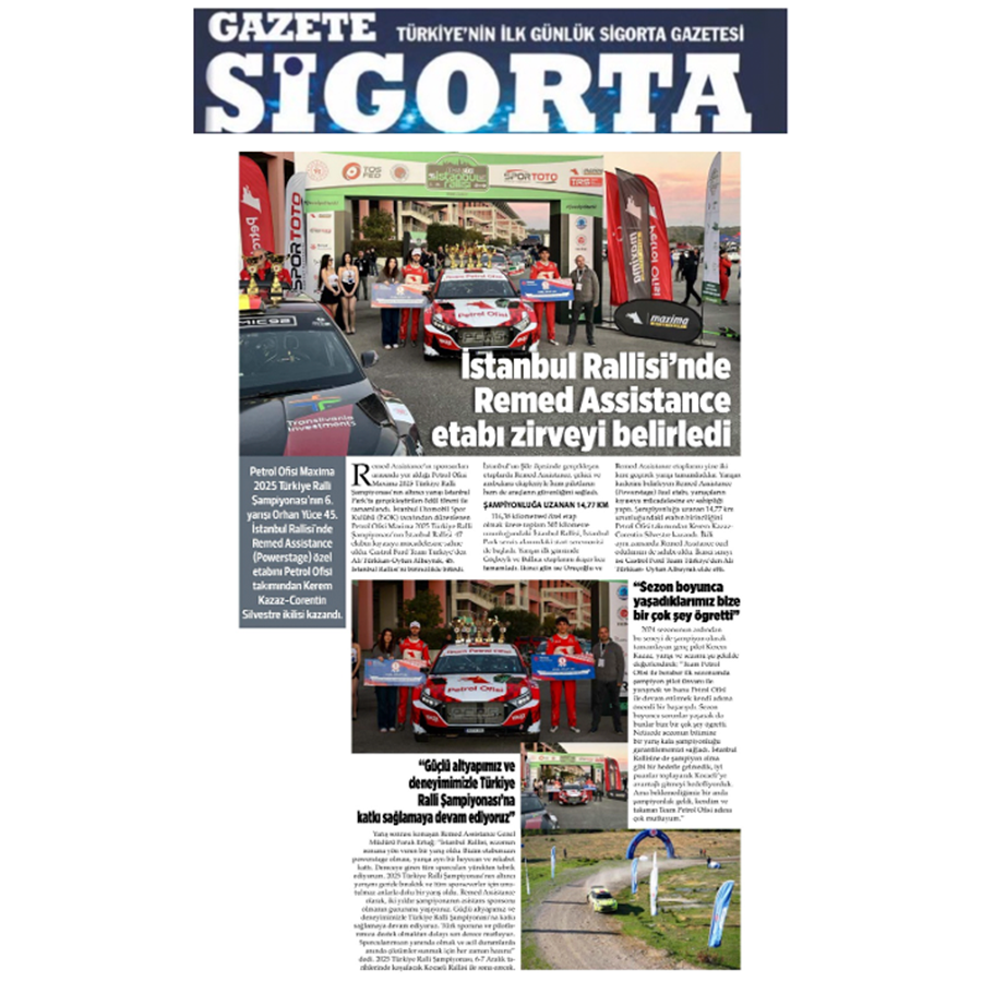 İstanbul Otomobil Spor Kulübü (İSOK) tarafından, Remed Assistance ve diğer sponsorların katkılarıyla düzenlenen Petrol Ofisi Maxima 2025 Türkiye Ralli Şampiyonası'nın altıncı yarışı İstanbul Park'ta gerçekleştirilen ödül töreni ile tamamlandı. İstanbul Rallisi 47 ekibin kıyasıya mücadelesine sahne oldu. Castrol Ford Team Türkiye’den Ali Türkkan-Oytun Albayrak, 45. İstanbul Rallisi’ni birincilikle bitirdi. İstanbul’un Şile ilçesinde gerçekleşen etaplarda Remed Assistance, çekici ve ambulans ekipleriyle hem pilotların hem de araçların güvenliğini sağladı.